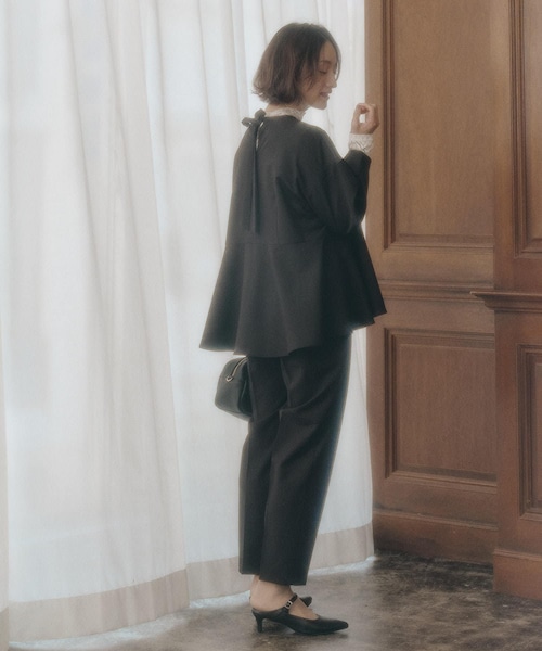 PUAL CE CIN2025 SPRINGAnniversary THE SPECIAL DAYby PUAL CE CIN◇簡単にコーデが完成!華やかセレモニーセットアップ◇●デザインフェミニンブラウスとスマートパンツの組み合わせが絶妙なセットアップ。フォーマルなシーンに悩まずにコーディネートが完成するアイテムです。ブラウスはペプラムシルエットでスタイルアップが叶いながらも落ち感のある、ややストレッチの効いた生地で窮屈感のない着心地。首元のセンターバックにはリボンを添え、丸みを帯びた立体的な袖口も上品な甘さを演出してくれます。パンツはセンタープレスのテーパードパンツ。後ろゴム仕様で、履き心地◎セットアップとしては勿論、ブラウス、パンツ、別々にも使え着こなしが楽しめるのでワードローブの幅がグッと広がる1着です。●スタイリングセットアップで着用するときちんとしたいシーンに対応できます。ヒールのあるパンプスをあわせていただくとスタイリッシュな着こなしに。パンツ単体では、美脚効果抜群のセンタープレステーパードパンツなのでざっくりしたニットやスウェットなどを合わせたカジュアルきれい見えスタイルにも対応します。●素材落ち感がありシワになりにくい素材を使用。【トップスサイズ】着丈:55.1~65cm肩幅:56.1cm裾幅:227.1cm袖丈:41.2cm(裄丈70.5cm)===============================洗濯:手洗い/ドライクリーニング透け感:なし裏地:なし伸縮性:ややあり光沢感:なし生地の厚さ:普通【スタッフコメント】年齢:30代後半/身長:154cm/普段着用サイズ:M~Lサイズサイズ感:フラットシューズでもギリギリ擦らない丈感です。ヒールを合わせて頂くとよりスタイリッシュに着こなせると思います。素材感:軽やかな着心地で落ち感のある綺麗見えするのが魅力の生地。薄手でありながらも透け感を気にせずに着られます。===============================※着用、お取り扱いの際は、商品についている品質表示とアテンションタグを必ずご確認下さい。※撮影場所やお使いのモニター環境により若干お色味が異なる場合がございます。特にロケの撮影では明るく見える傾向にございます。※予約商品はサンプルで撮影をしております。若干の仕様が変更になる場合がございますので予めご了承の上ご注文くださいますようお願いいたします。--------------------------------------------------------------【お買い物をよりお楽しみいただくために】気になるアイテムの『♡お気に入り登録』登録した商品の「残りわずか」「再入荷」「値下げ」などの情報や、クーポンなどのお知らせを受け取ることができます!PALCLOSETアプリのブランドフォロー新商品や最新ニュースのUP、イベントなどのお得な情報のお知らせが届き、いち早くチェックすることができます!セレモニー/セレモニースタイルオケージョン/オケージョンスタイル卒業式/卒園式/入学式/入園式学校行事/参観日/結婚式/参列七五三/753/お宮参り演奏会/発表会/同窓会/謝恩会/二次会