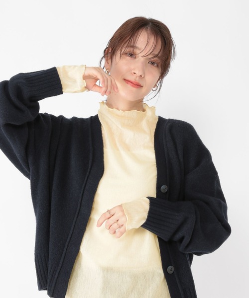 着回し力抜群のレイヤードアイテム一枚持っておくと重宝するハイネックプルオーバーーーー【素材】柔らかい起毛チュールを使用。程よいシアー感で秋から春まで長くお使いいただけます。【デザイン】今から春まで長くお使いいただけるハイネックプルオーバー。シンプルなデザインですが、襟元や袖口、裾のメローデザインがアクセントに。コーディネートに取り入れやすいカラー展開もポイントです。ーーー【スタイリング】寒い時期はニットやスウェットのインナーとして着用していただくのが◎暖かくなってきたらベストやビスチェとのレイヤードにもお使いいただけます。透け感 :あり伸縮性 :あり生地の厚さ :薄い裏地 :なしポケット :なしシアーカットソー ハイネックカットソー