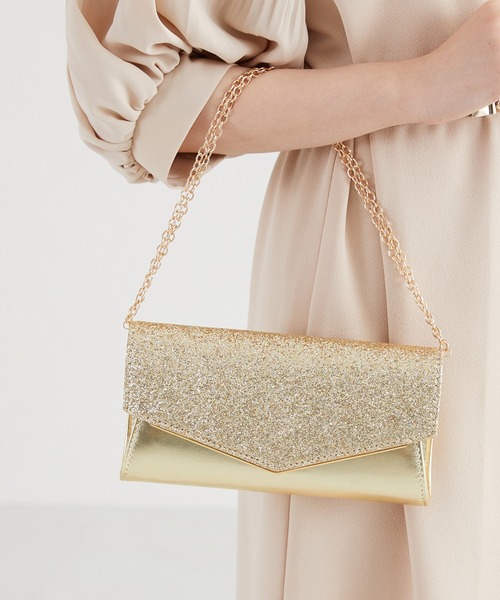フラップ部分に使用した大粒のグリッターと同色のメタリックコンビで、ワンカラーでも華やかな印象に。ショルダータイプのチェーンは取り外し可能な2way仕様で、結婚式や二次会、お呼ばれのどんなシーン にも活躍してくれる。 ★《お気に入り登録》でお得な情報をGET★ ・「商品のお気に入り登録」で再入荷通知やラスト1の通知、セールやクーポンの通知も受け取ることができます!→ハートマークをクリック ・「ブランドのお気に入り登録」で新商品や再入荷など、お得な情報を受け取ることができます! ------------------------------------------------------------------------------------- <価格改定のお知らせ> 2024/04/01(月)より昨今の原材料費や物流費の高騰のため価格改定をさせて頂きます。 商品タグに記載している価格につきまして、旧価格のものが混在している場合がございます。 ご了承下さいますよう、お願い申し上げます。 -------------------------------------------------------------------------------------