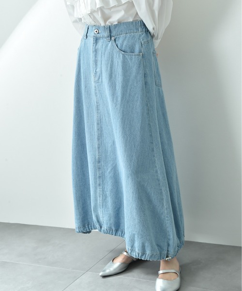 大人モードなデニムスカート自然に広がるシルエットを裾のドロストでコクーンにアレンジが可能。オールシーズン着まわせるデニムで、これ1枚でいつものスタイリングがワンランクアップ。着こなしのスパイスとして1枚あると重宝します。【取り扱い】ご自宅でイージーケア(手洗い)ができます。INTERPLANET/actuel(インタープラネット/アクチュエル)■conceptいつだって私らしく、私自身のスタイルが決まる。。。時代や年齢に媚びない『らしさ』を纏って生きる女性へ。旬なベーシックと抜け感のあるカジュアルをMIX。そんな大人カジュアルコーデを提案します。■お気に入りの登録についてショップ・ブランドのお気に入り登録でクーポンやタイムセールの通知などお得な情報を受け取ることができます♪また、気になるアイテムのお気に入り登録でセールや再入荷の通知など受け取ることができます。