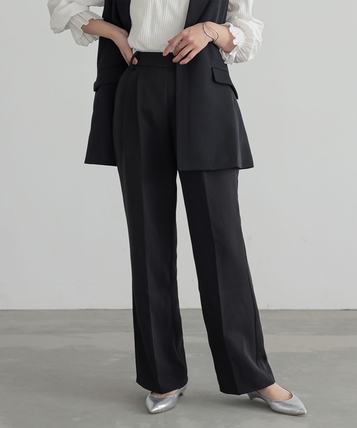 オンでもオフでも着回せる、上品タックパンツ。「セミワイド」の絶妙シルエットと2本のタックが作る立体感で、キレイめにもカジュアルにも合わせやすいシンプルなパンツです。高級感の溢れる生地感。特別な行事やフォーマルなシーンにも適した伸縮性のあるダブルクロス生地を使用。密度が高く、程よい厚みのしっかりとした素材です。バックウエストゴムの軽やかな穿き心地で、幅広いシーンに活躍するアイテムです。同素材の袖タックテーラードジャケットと合わせて、セットアップとしてもスタイリングしていただけます。▼ 同素材のジャケット商品名 『袖タックシングルテーラードジャケット』商品コード:90518200ブランド品番:25-J003(11on01s)