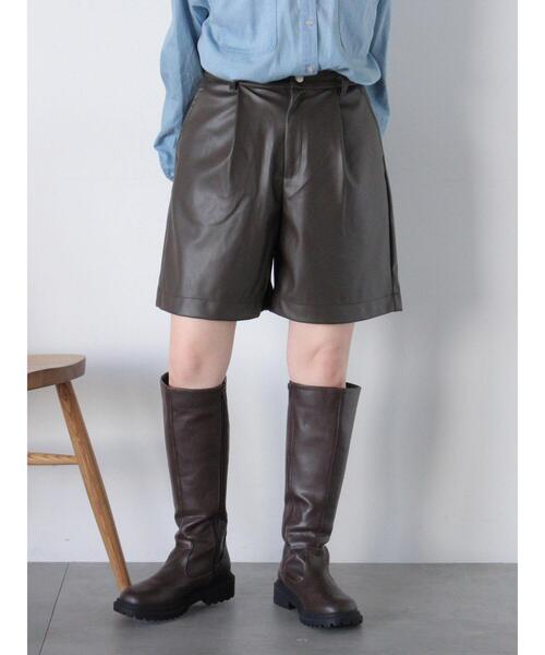 程よい光沢感のあるエコレザーで仕立てられたパンツ。 ハーフ丈のデザインになっており、足元にすっきりとした印象を与えます。 バックのウエストゴム仕様がラクな着心地を実現◎ カットソーはもちろん、ブラウスと合わせたコーディネートもおすすめです。 ※商品画像は、撮影環境やお客様のご利用のPC・スマートフォンのモニター環境などにより実物と色味に差異がある場合がございます。 【その他採寸】 F ウエスト:[後ゴム仕様]62cm