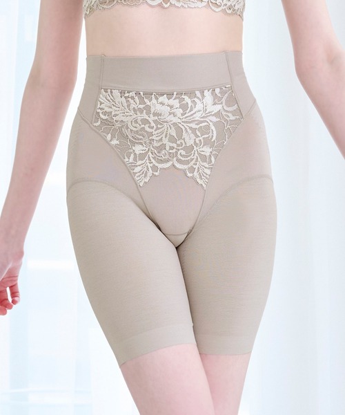 楽なはき心地なのにヒップと太ももをすっきり整える♪タイプの異なる2種類の生地を組み合わせた補正ガードル▼補整力がありながらも楽なはき心地補整力と楽な着心地にこだわったオリジナルパターンを採用。綿混トリコットサテンと、ナイロン綿ベア天竺のタイプの異なる素材を組合せることで、お尻と太ももの境目をしっかり作り、はくだけで美しいヒップラインを作ります。▼太ももをすっきり整える太もも部分にはサポート力の高い綿混トリコットサテンを使用。薄手ながらもパワーがあり、ピタッと太ももにフィットします。太もも内側の前部分にはパワーネットを裏打ちし、よりすっきり整えます。▼ぽっこりお腹もすっきりカバー前ウエスト部分はナイロン綿ベア天竺を折り返した二重仕様。伸縮性があり、座っているときでも圧迫感を感じにくくなっています。お腹押さえは、表側のレースと中にサポート力のあるパワーネット、肌側にナイロン綿ベア天竺を重ねた三重構造。レースとパワーネットはおへそから下腹周りに設置し、効果的にお腹を押さえます。▼ウエストの段差を軽減ウエストの脇から後ろにかけては、ナイロン綿ベア天竺でパワーネットを挟んだ三重構造。幅広い面でしっかり支えて、ウエストの段差を軽減します。また、腰のカーブに合わせた立体パターンで、フィット感を高め、安定感のあるはき心地です。▼丸みのあるヒップラインにヒップ下からサイドにかけては、パワーネットを裏打ちしたヒップアップベルトを設置。お尻と太ももの境目を付け、お尻を下からすくい上げてきれいな丸みのあるヒップラインを作ります。また、裾部分はヘム仕様で、段差を作りにくくアウターにも響きにくいです。▼フロントには華やかなレースフロントには、オリジナルの光沢落下板二浴染めレースを贅沢に使用。立体的なボタニカルモチーフの華やかなデザインです。▼ナイロン綿ベア天竺の機能性身生地は伸縮性と肌当たりが良い、ナイロン綿ベア天竺素材を使用。最高級ランクの綿糸(繊維の長さが約1.4倍)を使っているので、柔らかく滑らかな着心地。接触冷感、吸汗性があり、汗臭(アンモニア、酢酸、イソ吉草酸)の消臭機能も兼ね備えています。▼コーディネート商品ブラ お問い合わせ番号:DB124403ショーツ お問い合わせ番号:DB224402ブラキャミ お問い合わせ番号:DB524401スリップ お問い合わせ番号:DB524403 [お手入れ] 洗濯機洗い可(洗濯ネット使用)洗濯は下着の寿命を長持ちさせる、ランジェリーソープがおすすめです。150g (約30回~60回分) 問い合わせ番号:PD916006450g(約90回~180回分)問い合わせ番号:PD916016[注意事項]※濃色商品は、染色の性質上、洗濯すると色落ちする事があります※淡色や白物と組み合わせての着用や洗濯はお避け下さい※長時間濡れたままで放置しないで下さい※淡色製品には蛍光増白剤入り洗剤を使用しないで下さい※洗濯により多少縮む事があります※タンブラー乾燥機を使用しないで下さい※繊細な素材を使用している商品の場合には引っ掛かりなどには十分ご注意下さい※洗濯の際は商品を裏返した上、クリーニングネットをご使用下さい※プリント加工を施している商品の場合は着用や水洗いを繰り返す事により、揉まれたり擦られたりすると、ひび割れや脱落する事があります※また、プリント部分に直接アイロンをあてないで下さい※素材の特性上、毛羽立ち、毛玉が生じる事があります※手絞りの場合は弱く、脱水は短時間で行って下さい▼返品について商品の性質上、ご着用後のご返品についてはお受けすることができません。あらかじめご了承ください。