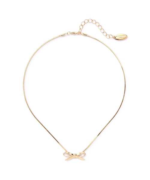メタルの小さなリボンがポイントになるチョーカータイプのネックレス。首に沿うような短いサイズで、首元を華奢に見せてくれるデザインです。 ※モデルの着用画像の場合、光の当たり具合により、実際の色味と異なって見えることがございます。色味は、商品単体の画像をご参照ください。
