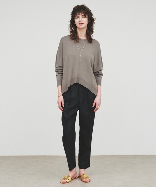 穿き心地・着回し力抜群! スタイルアップも叶えるキレイめシルエット 【デザイン】 ・ウエスト総ゴム仕様で楽な穿き心地を。 ・脚のラインを美しく見せるテーパードシルエットとセンタープレスで洗練された印象に。 ・サイドラインのトレンドデザインが、程よいアクセントをプラス。 【素材】 ・軽やかで快適な素材を使用。 ※手洗い可能 【着こなしポイント】 ・ブラウスやニットと合わせて、きれいめオフィスカジュアルスタイルに仕上げて。 ・丈感を活かしてソックスや足のラインを見せたリラックスした着こなしもおすすめ。 ーーーーーーーーーーーーーーーーーーーーーーーーーーーー 気になるアイテムはお気に入り登録がおすすめ! お気に入り登録で、再入荷通知やお値下げ情報をお知らせ。 お得な情報をいち早くお届けいたします! アイテムページにある、ハートマークをクリックして追加できます。 ーーーーーーーーーーーーーーーーーーーーーーーーーーーー ※照明の関係により、実際よりも色味が違って見える場合があります。また、パソコン・スマートフォンなどの環境により、若干製品と画像のカラーが異なる場合もございます。 店舗へのお問い合わせ商品番号:R91-62004 ●製品寸法: 01(S):W64cm H100cm 股下65cm 前股上25cm 渡り幅33cm 裾幅16cm 02(M):W68cm H104cm 股下65cm 前股上26cm 渡り幅34cm 裾幅17cm 03(L):W71cm H107cm 股下66cm 前股上26cm 渡り幅35cm 裾幅18cm 備考: