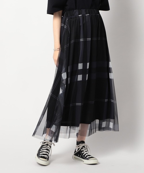 チュールチェックプリントスカート チュール素材にチェック柄をプリントしたロングスカートです。 動きに合わせて透け感があるチュールが揺れ、軽やかな印象です。 大きめのチェック柄により、カジュアルでヘルシーに見せてくれます。 履くだけでコーデが鮮度アップし、柄のアクセントにより、スタイリングにまとまりが生まれるアイテムです。 ■point かさつきのない、やや柔らかいチュールなので、全体的に落ち感が出てフレアーのボリュームが抑えられるのではきやすいシルエットです。 ご自宅での洗濯機洗いが可能なので、お手入れが簡単です。 トレーナーからニットまでシーズンによってトップスを変えられるので、年間を通して着用可能です。 ■detail *ウエストゴム *ポケットなし ■fabric …………………… 透け感:オフは透けあり 裏地:あり 伸縮性:あり 光沢感:なし 洗濯方法:洗濯機洗い可能 …………………… ※詳しいお手入れ方法は商品タグをご参照ください ■coordinate *スカートに特徴があるので、トップスはシンプルにショートめ丈のTシャツやプルオーバーがおすすめです。