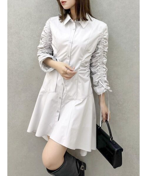 【商品】大胆にギャザーを施したスリーブとイレギュラーヘムラインが存在感を放つシャツワンピース。 韓国ライクなウエストに、イレギュラーヘムラインで目線を上げ、足長効果をプラス。 ローウエスト風の切り替えラインもトレンド感度を高めてくれます。 【スタイリング】 今季はソックスにローファーやパンプスを合わせたプレッピースタイルが今っぽくおすすめ。 シャツカラーなので、ニットベストやテーラードジャケット等とも高相性です。 【 お買いものにおすすめの便利機能! 】 ★商品のお気に入り登録 完売カラーの再入荷時や、ラスト1点の時、セール開始時にお知らせします。 ★ブランドのお気に入り登録 新商品や再入荷、セール情報など、いち早くブランドのお得な情報を受け取ることができます。 ぜひご活用ください。 ※実際にお届けする商品と仕様やサイズが異なる場合がございます。 また生産の都合上、お届け時期が前後する場合がございます。