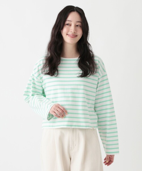 フランスで暮らす日々をイメージカラーにしたオリジナルボーダーシリーズ「MON JOURNAL」のプルオーバーです。 程よいピッチのボーダー柄で着こなしやすいアイテム。トレンドのショート丈を取り入れ、アクティブで軽快な印象を与えます。裾にはオリジナルのピスネームを施しさりげないアクセントをプラスしました。 ゆったりとしたドロップショルダーがリラックス感を演出しつつ、動きやすさをアップ。デニムパンツを合わせてフレンチシックなスタイリングに仕上げるのがおすすめですよ。カラーはピンク「LA F?TE DE LA ROSE~薔薇祭り~」、ライトピンク「LES GRAINES DE BONHEUR~幸せの種子~」、ライトブルー「LA ROUTE DE LA MER~海へと続く道~」、ライトグリーン「LE VERT D'EAU~水の緑色~」、ネイビー「LA RUE DE L'?PICERIE~食料品店がある通り~」の5種類から、気分やお好みに合わせてお選びくださいね。 *濃色製品は色落ちしますので他のものと分けて洗濯してください。洗濯前のつけ置きや濡れたままで長時間放置しないでください。 *アイロンを掛ける際はあて布を使用してください。 *1点ごとに柄の出方が違うことがあります。