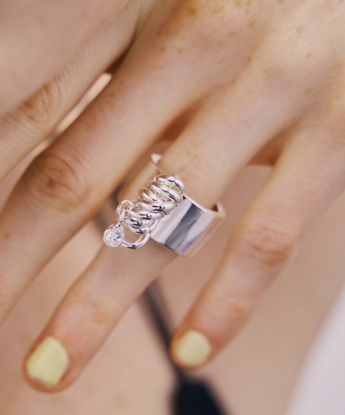大人気なCoilシリーズの新作。 LAPUISでは初となるビジューモチーフで、キュービックジルコニアのパーツが付いたリング。 大人が付けたくなるような、こなれたビジューアクセとして提案。存在感のある太めリングに、Coilを縦に配置した個性的なデザイン。 手元に抜群のアクセントを生むリング。 ■COLOR SILVER/GOLD/MULTI ※画像の商品は光の照射や角度により、実物と色味が異なる場合がございます。また表示のサイズ感と実物は若干異なる場合もございますので、予めご了承ください。 ※お取り扱いの際は、商品についている品質表示とアテンションタグを必ずご確認下さい。 <<LAPUIS/ラピュイ>> 這う。 沿う。 彩る。 マテリアルと曲線が織りなす装飾。 自然やアートからのインスピレーションを元に 繊細で、美しく、 日常と洋服の中に佇む存在でありたい。 <<お知らせ>> ◆商品のお気に入り登録◆ お気に入りアイテムの値下げ・再入荷・在庫1点などの通知を受け取ることができます。 ◆ブランドのお気に入り登録 ◆ 新商品や再入荷、セール、クーポン配布などお得な情報を受け取ることができます。 ※ご注文いただいた予約商品のお届け時期の確認は、注文履歴ページより行えます。