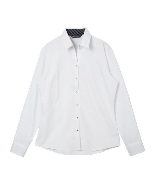 別布を台衿・カフス裏に加えて 汚れがちな個所をカバーします。 ボタン糸だけに濃色を使った さり気ないお洒落仕様は華美過ぎず、 ビジネススタイルに取り入れやすい一枚。 --透け防止シャツ レディース-- 透け感軽減+UVカット生地でどんな 季節もお洒落な着こなしが楽しめます。 形態安定加工と綿×ポリエステル 素材で、クリーニング要らずの 自宅で取扱い楽ちんのワイシャツ。 ■仕様 カフリンクス使用可能 アジャストボタン 前身頃ダーツなし・後身頃ダーツ入り 台衿内側・カフス裏側:別布仕様 ※別布を含む濃色生地は色落ち・移染が 発生する場合があるため、お洗濯時は 衣類の組合わせにご注意ください。 【BRICK HOUSE by Tokyo Shirts / ブリックハウス バイ トウキョウシャツ】業界トップ水準を誇るノーアイロンの形態安定加工は自宅で洗濯可能でお手入れ簡単!高度な縫製技術を用いた高付加価値シャツでありながら選ぶことを気軽に楽しめます。ベーシックから多様なデザインまで幅広いバリエーションで豊富なサイズ展開で、ディテールの隅々にまで織り込んで一枚一枚丁寧に仕立てられたシャツです。