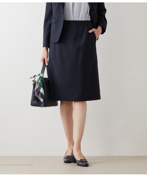 洗練度が高まる控えめグレンチェック クラシカルで洗練された印象を与えてくれる、グレンチェック柄のセットアップ対応スカート。無地ライクに使える控えめな柄でありながら、ニュアンスのある配色や繊細なラインが奥行きを感じさせます。カラーは明るく上品なグレー、ベーシックかつすっきり着こなせるネイビーの2色展開。 ■素材 程よいナチュラルストレッチで、シルエットがきれいに表現できるウールポリエステル素材。主張しすぎないベーシックな配色のグレンチェック柄は、ビジネスシーンに取り入れやすく単品性の高さも魅力です。裏地には、滑りの良いキュプラを使用しました。 ■デザイン 膝丈のシンプルなAラインスカート。広がりすぎず品よく決まる、すっきりとしたシルエットが魅力です。単品でもきちんと感があり、様々なトップスと合わせやすいのもポイント。裏地あり。ポケットあり。 ■シーズン 2025年春夏商品