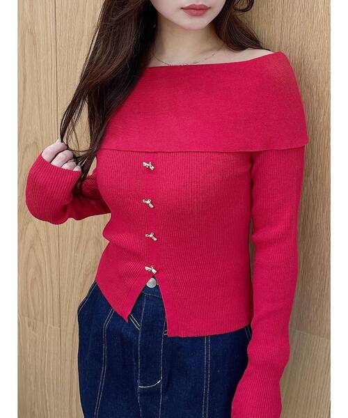トレンド感溢れる折り返し襟のオフショルダーデザインが魅力のリブニット。片側だけギャザーを寄せたアシンメトリーな襟が、さりげなく今年らしさをプラスします。フロントにはゴールドのリボン型ボタンをあしらい、上品なアクセントを演出。裾にはスリットを入れて、抜け感のある旬のシルエットに仕上げました。アウトスタイリングでもインスタイリングでもバランスが取りやすい万能アイテム。▼スタイリングデニムでカジュアルに、またはマーメイドスカートでフェミニンにと、幅広いコーディネートが楽しめます。~~ZOZOTOWNでお買い物を楽しむ便利機能~~♡商品のお気に入り登録完売カラーの再入荷時、ラスト1点の時、セール開始時に通知でお知らせします。予約アイテムが入荷して通常販売になった時もお知らせしてくれます!♡ブランドのお気に入り登録新商品や再入荷、セールやクーポン情報など、ブランドのお得な情報をいち早く受け取ることができます!~~~~~~~~~~~~~~~~~~~~~~~