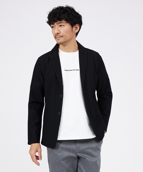大人で上品な雰囲気を演出 【素材】ナイロンとポリウレタン素材をメッシュ地に編み込んだとてもキックバックの効いたカットソー素材を使用。 サラッとしたタッチ感と通気性抜群の素材なので真夏でも快適に着用できます。 また、超軽量素材でシワにもなりにくいので、持ち運びにも便利です。自宅で洗濯でき、お手入れが簡単なのも嬉しいポイント。 【デザイン】 ややタイトめなシルエットでモードでエレガントな仕上がりです。シャツ感覚で気軽に羽織れ、襟型をショール型にすることにより、大人で上品な雰囲気を演出してくれます。 また、襟裏に施したトリコロールカラーテープで、さりげない遊び心を盛り込みました。 【コーディネート】 Tシャツやデニム、ショーツといったカジュアルスタイルからポロシャツやスラックス合わせなどの綺麗めスタイルまで着用できる汎用性あるアイテムです。 また、きちっと感だせるので、テレワークなどのオンライン会議やちょっとしたフォーマルな場面での着用にもおすすめです。 ********************** 透け感:ややあり 裏地:なし 伸縮性:あり 光沢感:ややあり 生地の厚さ:やや薄手 **********************