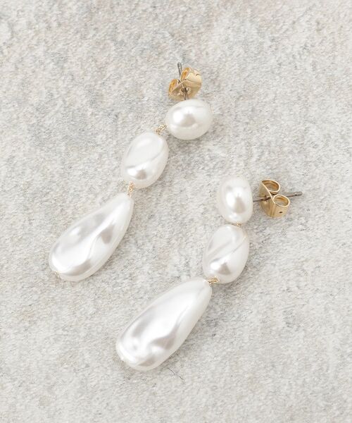 淡水パールを贅沢に使用した華やぎピアス【デザイン】・エレガントなフェイクパールを使用したデザインで、シンプルながらも存在感があります。異なるサイズのパールが交互に配置され、動くたびに美しい輝きを放ちます。・淡水パールを使用し、軽やかさと心地よい着け心地を実現。【着こなしポイント】・カジュアルからフォーマルまで幅広いスタイルにマッチ。シンプルなトップスやドレスのアクセントとして活躍します。また、ビジネスシーンでの取り入れ方もおすすめです。※照明の関係により、実際よりも色味が違って見える場合があります。また、パソコン・スマートフォンなどの環境により、若干製品と画像のカラーが異なる場合もございます。店舗へのお問い合わせ商品番号:C71-32510●製品寸法:00:全長4cm モチーフH1.7cm モチーフW0.8cm備考: