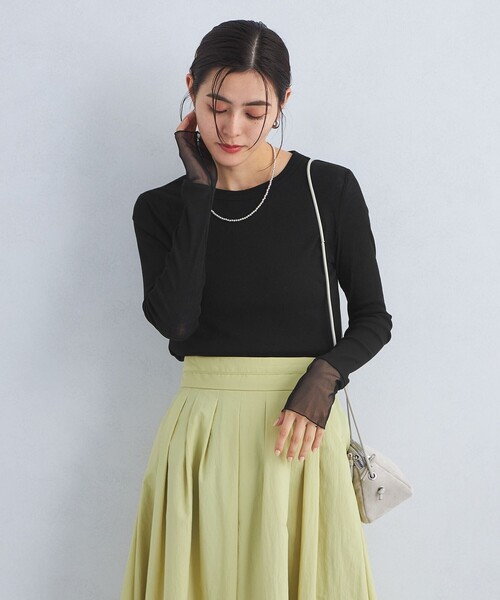 抜け感のあるコーディネートを叶えてくれるシアートップス■デザイン袖口のメッシュ素材が、カジュアルすぎず上品な印象の一枚。長めの袖丈で、手元をくしゅっとたるませて着こなすのがおすすめです。一枚ではもちろん、インナーとしてもロングシーズン活躍してくれます。■素材柔らかな着心地のコットン素材のカットソー。袖口にはシアー感のあるチュール素材を使用しています。■コーディネートシンプルなデザインなのでレイヤードスタイルに重宝します。インナーは同系色でまとめるのが◎#秋服,#冬服,#春服============================ケア方法:手洗い可============================【注意事項】※商品を使用前に、タグ等に記載されている「取り扱い上の注意書き」、「洗濯表示」を必ずご確認ください。※商品画像は、光の当たり具合やパソコンなどの閲覧環境により、実際の色味と異なって見える場合がございます。あらかじめご了承ください。※商品の色味の目安は、商品単体の画像をご参照ください。店舗へお問い合わせの際は、全国のgreen label relaxing各店舗まで下記の品名/品番をお申し付けください。品名:FFC チュールDKGシアーPO_A 品番:36121372482