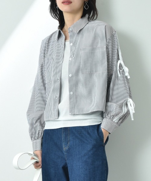 袖口リボンがポイントコンパクトなシャツブラウスシンプルなデザインの中に袖のリボンが目を惹くシャツブラウス。白に同色の白リボン、ストライプには白リボン配色がアクセントになり、カジュアルな素材感でも女性らしく着こなせます。肩部分が少しドロップしたシルエットになっているのでリラックスした着心地で、少しボリュームのある袖デザインは旬なコーディネイトに決まります。コットン混素材で肌触りも柔らかく、これからのシーズンにぴったりな素材感です。■取扱いご自宅でイージーケア(手洗い)ができます。INTERPLANET/actuel(インタープラネット/アクチュエル)■conceptいつだって私らしく、私自身のスタイルが決まる。。。時代や年齢に媚びない『らしさ』を纏って生きる女性へ。旬なベーシックと抜け感のあるカジュアルをMIX。そんな大人カジュアルコーデを提案します。■お気に入りの登録についてショップ・ブランドのお気に入り登録でクーポンやタイムセールの通知などお得な情報を受け取ることができます♪また、気になるアイテムのお気に入り登録でセールや再入荷の通知など受け取ることができます。