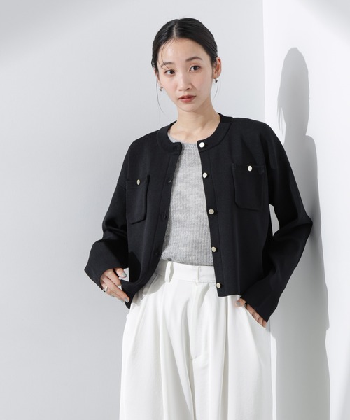 【2025 SS】NANO universe(ナノ・ユニバース)『軽アウターとしてロングシーズン活躍◎』胸ポケットデザインが魅力のジャケット風ニットカーディガン。UVカット機能付きと、ご自宅で洗濯洗いができるのも嬉しいポイント!フロントのゴールド釦が華やかな印象で、通勤やオフィスシーンちょっとしたお出掛けまで幅広く活躍します。■デザイン・着回し力と大人の抜け感を兼ね揃えたデザイン・広めの身幅と短めの丈感がトレンドライクな印象・フロントと胸ポケットのゴールド釦が華やかさを演出■素材・程よい肉感とハリ感の素材【洗濯機洗可とUVカット機能付き】洗濯機で簡単にお手入れができ、紫外線のダメージから守ることができるアイテム・UVカット機能あり・洗濯機使用可※こちらの商品は、裏返してネットに入れていただくことでご家庭での洗濯が可能です。その他のお取り扱いについては、洗濯ラベルをご確認ください。■カラー展開・ON/OFFで合わせやすいベーシックなブラック、L.グレー、オフホワイト■コーディネート・デニムパンツと合わせてカジュアルスタイルにもマッチ!・羽織としてはもちろん、フロントを留めてプルオーバー感覚での着こなしもおすすめ■シリーズ・673-5122313 洗濯機洗可UVカットバイカラー釦ディティールニット■サイズ感・インナーを合わせやすい程よくゆとりがあるサイズ感■取扱方法裏返してネットに入れてください。蛍光増白剤が入っていない洗剤を使用して下さい。濡れたままの放置や、長時間の浸漬はしないで下さい。洗濯後は形を整えて直ちに干してください。あて布を使用してください。釦にはアイロンを当てないで下さい。※サンプルにて撮影、採寸を行う為、実際にお届けする商品と仕様やサイズが異なる場合がございます。予約時は生産の都合上、お届け予定時期が前後する場合もございますので、予めご了承下さい。※光の当たり具合や撮影環境により色味が異なる場合がございます。正しい色味はスタジオ画像の色味をご参照ください。※こちらの商品は、アウトレット店舗での取り扱いになります。直接店舗へお問い合わせの際はアウトレット店舗へお願い致します。プロパー店舗での取り扱いはございませんので、ご了承ください。▼商品のお気に入り登録お気に入りアイテムの再入荷や残り1点の通知を受け取ることができます。▼ブランドのお気に入り登録新作アイテムの入荷や人気アイテムの再入荷、タイムセールやクーポンなど、いち早くブランドのお得な情報を受け取ることができます。