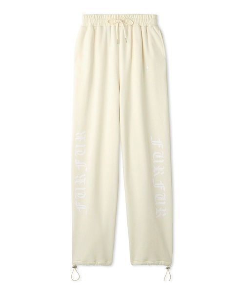 FURFURのロゴを大胆にプリントした、ぱっと目を惹く字体がインパクトのあるスウェットパンツ。ワイドなシルエットに裾の丸ゴムとストッパーを備え、好みのフィット感に調整可能。様々な着こなしに対応できる便利な一枚です。透け感;なし裏地;なし伸縮性;ややあり光沢感;なし生地の厚さ;普通※照明の関係により、実際よりも色味が違って見える場合があります。またパソコン・スマートフォンなどの環境により、若干製品と画像のカラーが異なる場合もございます。予めご了承ください。商品の色味は、商品単品画像をご参照下さい。 ※商品画像はサンプルのため、色味やサイズ等の仕様に変更がある場合がございますので、予めご了承ください。