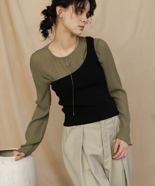 -point- & -styling- スタイリングが無限大なニットビスチェが登場。 こなれ感のあるアウトリンキングデザインを採用し、 上下どちらで着用してもきれいなカーブラインがでるよう細部までこだわりが詰まった1枚です。 肩部分がスナップボタン仕様になっており 片側のみに肩を通したワンショルダ―やホルターネック、上下逆に着た今年らしいスタイリング等 その日の気分に合わせて様々な着こなしを楽しめます。 コンパクトなサイズながらも伸縮性があり着心地も〇 シャツ・ブラウスからTシャツまで、インナー次第でロングシーズン活躍するアイテム。 ワンショルダーレイヤードビスチェ ---------------------------- 素材 ナイロン42%・レーヨン40%・ポリエステル18% ---------------------------- 伸縮性 ★★☆☆☆ 裏地 なし ---------------------------- ※モニター・環境等により実際の商品と多少色味が異なって表示される場合がございます。 予めご了承をお願いいたします。 ======================= ■袋梱包の為、染料による特有の匂いが抜けきれず、匂いがする場合がございますが不良品にはあたりません。 上記注意点での返品、交換はお断りします。ご了承の上お買い求めくださいませ。 ■本製品は生産過程におきまして色味、サイズ感等若干の誤差が出る場合がございます。予めご了承くださいませ。 ======================= 【お買いものをお楽しみいただく為に!】 ▼商品のお気に入り登録 完売カラーの再入荷通知や、ラスト1点の通知、セールの通知も受け取ることができます。 ▼ブランドのお気に入り登録 新商品や再入荷など、いち早くブランドのお得な情報を受け取ることができます!