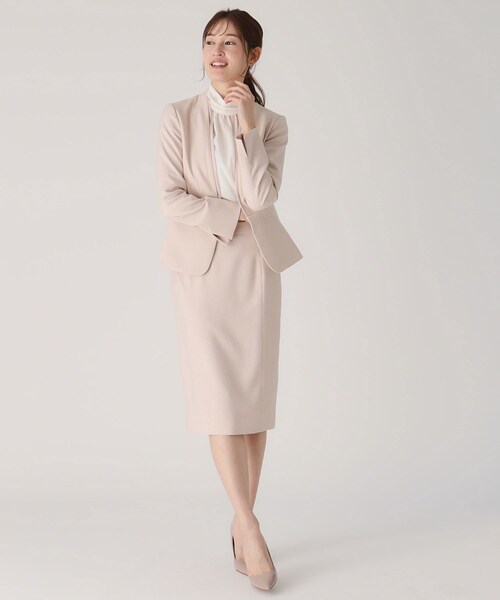 〇デザインポイント クードシャンス定番のタイトシルエットのスカートです。 フロントに縦のラインを入れることで、すっきりと美脚に見える効果が期待できます。 後ろファスナー開きで、ベンツ有りですので歩きが楽です。 〇素材ポイント クードシャンスオリジナル素材です。 微光沢で滑らかな風合いと杢調の見え方が特徴です。 【仕様】 ・ポケットなし ・後ろファスナー ・裏地あり 〇スタイリングポイント ブラウスと合わせて通勤におすすめ。 シンプルなデザインなのでプリントブラウスやデザイントップスとも好相性です。 同素材のジャケット(品番187-42258)とセットアットで着用するときちんと感を演出でき、セレモニーやオケージョンシーンにも活躍します。 ※照明の関係により、実際よりも色味が違って見える場合があります。また、パソコン・スマートフォンなどの環境により、若干製品と画像のカラーが異なる場合もございます。 モデル情報:身長169cm B83 W61 H89 着用サイズ:38(M) 店舗へのお問い合わせ商品番号:187-72258 ●製品寸法: 34(SS):W65cm H89cm 総丈63cm 36(S):W69cm H92cm 総丈65cm 38(M):W72cm H95cm 総丈65cm 40(L):W75cm H98cm 総丈66cm 42(LL):W79cm H102cm 総丈66cm 備考: