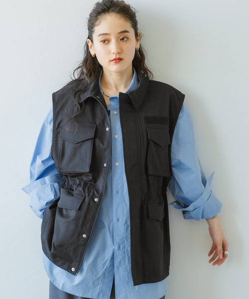 トレンドのミリタリーアイテム! メンズライクにぴったりなワークベスト◎ ■おすすめの着こなし ☆デイリーユースな着こなしには・・・ ダメージデニムと合わせればかっこいいクールな印象に◎ プリントTシャツ等と合わせたシンプルなスタイリングもおすすめです! ☆女性らしい着こなしには・・・ ワンピースやスカートと合わせれば大人っぽくきれいめな印象に! シャツに羽織ることで大人カジュアルなスタイリングも楽しめます! 小物でバランスを取り、ラフに見えすぎない女性らしいスタイルがおすすめです! ■ポイント 大人気のミリタリーベストが今年も登場! オーバーサイズでストレートシルエットなので、メンズライクなスタイルと相性抜群◎ ウエストと裾部分にドローコードを仕込んでいるので、メリハリをつけられるのも嬉しいポイント。 フロント部分のビックポケットがスタイリングのアクセントに! 普段使いはもちろんアウトドアシーンでの着用もおすすめです。 ルーズ感のある着心地でゆるっとノンストレスで着こなせます! これからの季節に重宝したい1着です! ■素材 耐久性と速乾性に優れているポリエステル素材を使用。 さらっと軽い着心地でオールシーズンお使いいただけます。