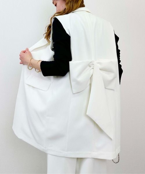 バックスタイルがエレガントに華やぐリボンジレ。とろみのあるさらっとした生地感で肌触りの良いアイテム。上品さもありつつバックリボンでフェミニンさをプラス。程よい丈感でウエスト周りをカバーし、ストレートラインなのできれいなシルエットを演出してくれます。オケージョンスタイルにも、デニムと合わせてカジュアルダウンにも着用できる万能な1枚。ブラウスやシャツなど、何か物足りなさを感じた時にさらっと羽織るだけでキマるアイテムです。同素材パンツとセットアップとしての着用も可能です。同素材パンツ品番 / 商品名:149000【セットアップ可能】センタープレスワイドパンツ※ポケット付き(胸ポケットフェイクデザイン)※リボン部分縫い付け取り外し不可【詳細情報】厚み:□薄手 ■ふつう □厚手透け感: ■なし □あり光沢感: ■なし □あり伸縮性: □なし ■あり裏地: □なし ■ありポケット:□なし ■あり重量: 約500g※撮影場所や明るさにより実際の商品と色味が若干異なる場合がございます。 ☆商品のお気に入り♡登録を押せば”再入荷通知”や”残りわずか通知” 値下げのお知らせが届きます!お気に入りのブランド登録していただければ新商品入荷のお知らせも届きますので是非登録してみて下さい。