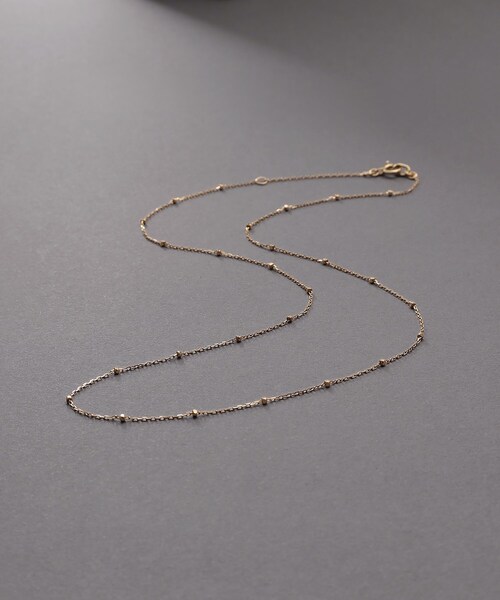 ココシュニックオンキッチュからK10素材のネックレスが登場。 シンプルな華奢なスタッドケーブルチェーンのネックレスは、ゴールドの素材の持つ美しさが際立つシンプルなデザイン。 K10ならではの優美で贅沢な地金の輝きを放ちます。 長さは40cmのお作りで、アジャスターカンを使用することで、37cmのネックレスとしてもお使いいただけます。 同シリーズのネックレス(767-31386、767-31387、767-31389)、ピアス(767-71449、767-71450)もございます。 ※生産時期により、仕様や寸法に個体差がございます。予めご了承ください。 ※照明の関係により、実際よりも色味が違って見える場合があります。また、パソコン・スマートフォンなどの環境により、若干製品と画像のカラーが異なる場合もございます。 ※巾着のロゴが画像のものに変更になります。発送のタイミングによっては変更前の巾着が届く場合もございます。予めご了承ください。 ご購入商品の修理について ココシュニックの商品はジュエリーの為、通常のお直しセンターでの修理の対応ができません。 商品と品質証明書をご持参いただき、お近くの直営店へお持込下さい。 お修理内容によっては有償の場合やお受けできない場合もございます。 ショップリスト・連絡先はお手数ですが、ココシュニックのお取り扱いショップ検索等でご確認お願い致します。 店舗へのお問い合わせ商品番号:767-31388 ●製品寸法: 40:全長40cm 幅約0.1cm 備考: