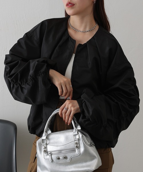 【デザイン性抜群!軽量アウター】 オーバーサイズの甘辛ブルゾンが登場! ありそうで無かった、カジュアルにも甘めにも寄せられる春先にぴったりな一枚 着心地は軽く、袖にたっぷりと入ったギャザーがポイント ジップを少し開けて着るとこなれ感が出て、デイリー使いしやすい万能アイテム 【商品ポイント】 ・サッと羽織れる軽い着心地 ・袖部分にギャザーデザインが施してあり程よいボリューム感 ・たっぷりとしたシルエットでインナー選ばず着回し自由自在 ---------------------------------------------------- ■商品特徴 洗濯方法:洗濯機洗い可 裏地:あり 透け感:なし 伸縮性:なし 光沢感:ややあり 生地の厚さ:普通 ---------------------------------------------------- ■素材 表地: ポリエステル100% 裏地: ポリエステル100% ---------------------------------------------------- ※着用、お取り扱いの際は、商品についている品質表示とアテンションタグを必ずご確認下さい。 ※商品タグに記載されている商品名がWEBでの表記名と異なる場合があります。 ※画像の商品はサンプルです。実際の商品と仕様、加工、サイズが若干異なる場合がございます。 ※照明の関係により、実際よりもやや明るく見える場合がございます。またパソコンなどの環境により、若干製品と画像のカラーが異なる場合もございます。予めご了承くださいませ。 【お気に入り登録】してお得な情報をCHECK!! ・「商品のお気に入り登録」で再入荷通知や、ラストの通知、セール通知も受け取ることができます。 ・「ブランドのお気に入り登録」で新商品や再入荷など、お得な情報を受け取ることができます。