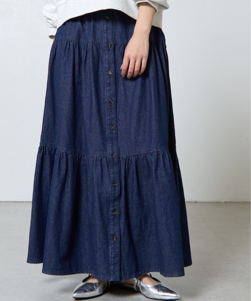 【ボタンデザインが特徴のティアードデザインスカート】デニムに施されたティアードデザインが、カジュアルフェミニンな印象に横幅広めのシルエットが快適な着心地カジュアルにもキレイめにマッチするので、ロングシーズン着用して頂けます【商品ポイント】・薄手のデニム素材でオールシーズン着用可能・ウエスト両サイドゴム仕様でゆったりシルエット・フロントのボタンを開けてスリット仕様にも----------------------------------------------------■商品特徴洗濯方法:手洗い可裏地:なし透け感:なし伸縮性:なし光沢感:なし生地の厚さ:普通----------------------------------------------------■素材表地: 綿90%,レーヨン6%,再生繊維(セルロース)4%----------------------------------------------------※着用、お取り扱いの際は、商品についている品質表示とアテンションタグを必ずご確認下さい。※商品タグに記載されている商品名がWEBでの表記名と異なる場合があります。※画像の商品はサンプルです。実際の商品と仕様、加工、サイズが若干異なる場合がございます。 ※照明の関係により、実際よりもやや明るく見える場合がございます。またパソコンなどの環境により、若干製品と画像のカラーが異なる場合もございます。予めご了承くださいませ。【お気に入り登録】してお得な情報をCHECK!!・「商品のお気に入り登録」で再入荷通知や、ラストの通知、セール通知も受け取ることができます。・「ブランドのお気に入り登録」で新商品や再入荷など、お得な情報を受け取ることができます。