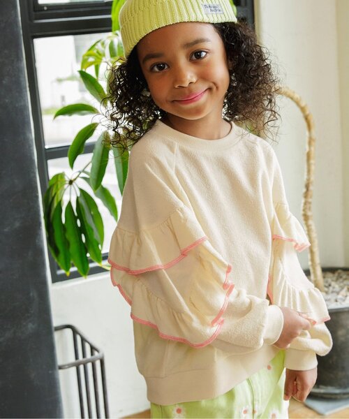 BREEZE(ブリーズ)の長袖Tシャツ「フリルロンT」は、手頃な価格と豊富なバリエーションが人気!通園・通学にも使えるデザインが多く、着回し力抜群です! 【取り扱い表示】 40℃を上限に洗濯機で洗濯、デリケートアイテムモード、ネット使用、漂白剤を使用禁止、色物は同系の色と一緒に、洗濯後直ちに取出し、タンブル乾燥不可、日陰で吊り干し、低温でアイロン、商業ドライクリーニング不可 【ご注意事項】 素材の特性上、過度の力(引っかけや摩擦等)がかかることにより、ループが飛び出したり、ほつれることがあります。 出来るだけ美しくご利用頂くために次のことにご留意下さい。 ○ 過度の力がかからない様に着用、着脱には十分ご注意下さい。 ○ 押し洗いを推奨いたします。 ○ 形を整えてから干して下さい。 ※商品により多少の誤差が生じる事がございます。あらかじめご了承下さい。 ※ご使用のパソコンやブラウザの環境により、実際の色とは多少異なる場合がございます。 ※モデル着用写真についてはイメージの為、実際の商品とカラーや仕様が異なる場合がございますので、商品画像をご覧ください。 【 BREEZE -ブリーズ- 】 WEAR A HAPPY SMILE こだわりと遊び心のつまった、着ると「笑顔」のWEAR、「着たい」がいっぱいのSHOP そんなHAPPY SMILEに出会える場所がBREEZE