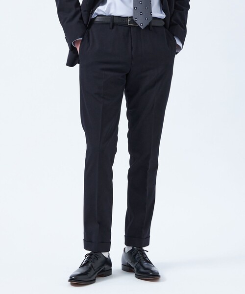 抜群のストレッチ性と上品なウール調の風合いを併せ持つセットアップトラウザーズ 【デザイン】 定番のスリムフィットモデル(ヒザ裏付き)。すっきりとしたテーパードシルエットです。 【素材】 ウールライクなポリエステル強撚糸によるドライなタッチ感と、ストレッチ糸によるキックバックの良さを併せ持つキャバリーツイル素材。綾目の立ったツイル組織が光沢感とハリ感を生み、高級感を演出します。生地は深みのあるTOP調を染め分けにより表現しウールのようなタッチに仕上げています。 【機能性】 ウォッシャブル・しわになりくい *同素材のジャケット(品番:H1E27510)の展開もございますので、セットアップとしても着用いただけます。 ビジネスマンが出張を快適に過ごすためのアイテムである「トロッター」シリーズ。マッキントッシュ フィロソフィーならではのファンクションへのアプローチを本格志向のものづくりに融合させたコレクションです。 おすすめ着用期間:春/秋 ※サイズについては、仕様書のサイズを記載しており、多少の誤差が出る場合がございます。 ※この商品はサンプルでの撮影を行っています。 実際の商品とイメージ、仕様が異なる場合がございます。 ※こちらの商品は着用前に裾直しが必要になります。