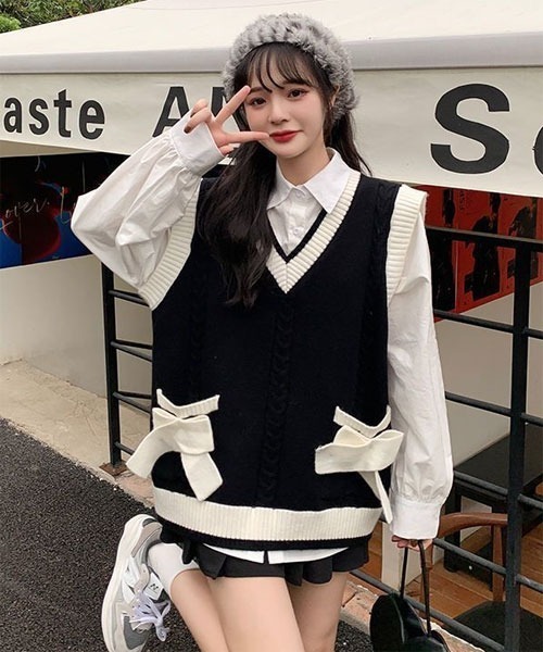 キュートなリボンが印象を高めるケーブルニットベスト♡ 柔らかく肌馴染みがいい素材で、伸縮性が良く着心地抜群◎ 春秋の季節の変わり目などにさっと着ていただける一枚あると活躍間違いないアイテムです。 シンプルなデザインなので、無地や柄物など様々なコーディネートがお楽しみいただけます♡ シャツ&デニムと合わせてカジュアルコーデはもちろん、 甘めのブラウスと合わせてフェミニンなコーデなど様々お楽しめます。 ※ポケットはフェイクになります。 ‥‥‥‥‥‥‥‥‥‥‥‥‥‥‥‥‥ 透け感:無 伸縮性:有 厚さ:普通 サイズ感:普通 ‥‥‥‥‥‥‥‥‥‥‥‥‥‥‥‥‥ ●サンプル品を使用している事もあり、サイズ感など多少異なる場合もございます。 ●パソコンのモニター、撮影の光量などにより画像と実物の色味が異なって見える場合がございます。 ●入荷時期・追加生産により画像・詳細と多少異なる場合がございます。 ■商品によって生地の他繊維の混紡、縫製の多少のほつれなどがある場合がございます。