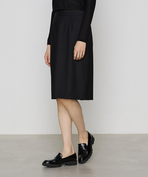 《デザイン》 すっきりとしたラインが美しいタイトスカートです。 前は要素をそぎ落としミニマルで美しいシルエットを活かしながら、後ろはボックスタックを重ねたスリットがポイントです。 ディープスリットで女性らしい雰囲気を出しながら脚の見えすぎを防ぐ実用性も兼ね備えています。 後ろは中心側だけゴムギャザーにし、快適なはき心地です。 昨年のタイトスカート(商品番号:15-80FG01-204)は着丈76.5cmでしたが、今年は着丈を13.5cmカットし63cmにしています。 座ってもひざが隠れる絶妙な着丈で、お仕事によって着やすいようにしています。 小柄な方にも着やすいアイテムです。 《素材》 メゾン素材も手掛ける、トルコ〔バハリエ社〕の2WAYストレッチトロです。 トルコでも有数の紡績から染めまで一貫して行う、ヨーロッパのクオリティに匹敵する品質の高さが特長です。 あえて、ウールにポリエステルをブレンドしたトロを使用しています。 スーツに最適なスーパー120のウールを使用し取り扱いのしやすいポリエステル、ストレッチ性を持たせるポリウレタンをブレンドし風合いの上質さと日常着としての取り扱いのしやすさのバランスの良いトロに仕上げています。 薄くて軽い2WAYストレッチの素材は長時間での着用でのしわになりにくさ、快適な着心地、 生地の収縮によるなじみがもたらす仕立て映えを実現します。 更に仕上げに微光沢を出す加工を施し、原料自体のクオリティに加え、適度なつやを持たせた一目で上質さを感じられるトロに仕上げています。 《セットアップ》 同素材のジャケット(商品番号:15-80GK01-205)(商品番号:15-80GK02-205)ジレ(商品番号:15-80VK05-205)と合わせて、セットアップとしてお召しいただけます。 ※在庫がない場合もございますので、予めご了承くださいませ。