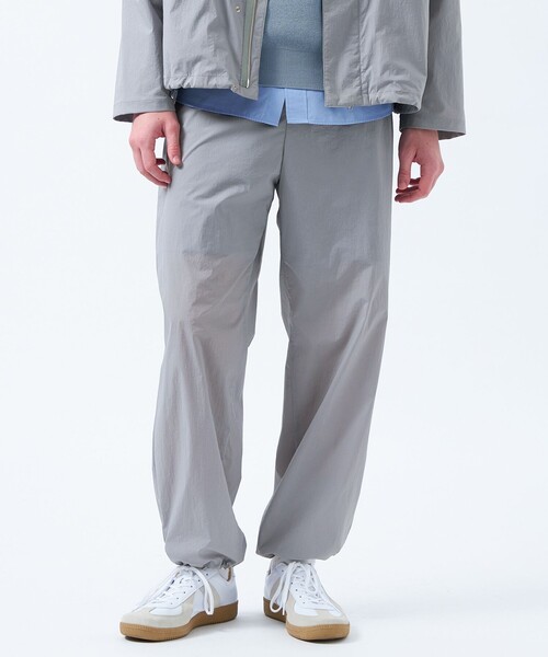 マットな質感とさらりとした風合いで、穿き心地の良いイージーパンツ 【デザイン】 ウエストがドローコード付き、フルシャーリング仕様のイージーパンツ。程よくゆったりとしたリラックスシルエット。裾にはスピンドル仕様を採用し、裾口のシルエット変えることで、様々なコーディネートが楽しめます。 【素材】 細番手のナイロンを使用したストレッチワッシャータフタ素材。ドライタッチで肌離れが良く、ハリ感と軽量感が特徴。 【機能性】 ウォッシャブル・しわになりにくい *同素材のブルゾン(品番:H1F68513)の展開もございますので、セットアップとしても着用いただけます。 【おすすめ着用ウエスト】 38サイズ:ウエスト78cm前後の方 40サイズ:ウエスト82cm前後の方< おすすめ着用期間:春/秋 ※サイズについては、仕様書のサイズを記載しており、多少の誤差が出る場合がございます。 ※この商品はサンプルでの撮影を行っています。 実際の商品とイメージ、仕様が異なる場合がございます。