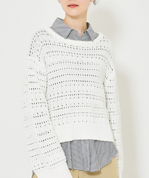 *Detail*丸みのあるコットン糸を使用し、表情豊かな透かし編みで仕立てたローゲージニット。 柔らかな風合いと軽やかな着心地が魅力。 ショート丈なので、バランスよくすっきりとしたシルエットを演出します。 *Coordinate* デニムやワイドパンツと合わせれば、抜け感のあるリラックスコーデに。 シャツやワンピースとレイヤードすれば、トレンド感のあるスタイリングに。 春らしい軽やかさを楽しめる一枚です。 【商品のお気に入り登録】 完売カラーの再入荷通知や、ラスト1点の通知、プライスダウンしたセール通知も受け取ることができます。 【ブランドのお気に入り登録】 新作や再入荷等、いち早くブランドのお得な情報を受け取ることができます。