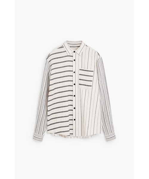 オフホワイトベースに、左右で異なるストライプパターンを配したアシンメトリーデザインの長袖シャツです。片側は太めのボーダーストライプ、もう片側は細かなピンストライプを組み合わせ、現代的でクリエイティブな印象を演出しています。胸ポケットも同様にストライプの切り替えデザインを採用し、細部に至るまでこだわりが光るアートピースのような仕上がり。レギュラーカラーとフロントボタンでクラシックなシャツディテールを保持しています。**********************生地の厚み:普通光沢感:なし透け感:なし重さ:普通伸縮性:なし**********************【スタッフ着用コメント】《スタッフ KANAME》身長:177cm/体重:60kg/体型:中肉中背/普段サイズ:L/着用サイズ:M177cmでMサイズを着用したところ、程よくジャストサイズで着用できました。アシンメトリーストライプが非常にユニークで、遠目には上品なシャツに見えますが近くで見ると個性的なディテールが楽しめます。シンプルなボトムスと合わせてデザインを主役にするスタイリングがおすすめです。※画像のモデルとコメントのモデルは異なります。**********************<商品のお気に入り登録>再入荷、残り1点などの通知を受け取ることが出来ます。・ブランドのお気に入り登録新商品や再入荷、ショップのおすすめニュースなど、いち早くブランドのお得な情報を受け取ることができます。※他のキャンペーンにより、期間中に価格が変動する場合があります。※セールは予告なく終了させていただく場合もあります。<information>・アイテムのお気に入り登録お気に入りした商品の入荷状況や、残り1点となった際の通知、セール情報などをお届けいたします。・ショップのお気に入り登録最新コレクションの入荷情報や品切れ商品の再販売、ショップニュースなど、さまざまな最新情報をご案内いたします。<Pick up>店舗取り置きサービスがスタートいたしました。ご注文の商品を最短即日、お近くの店舗でお受け取りいただけます。【Desigualデシグアル】 バルセロナ発のファッションブランド「Desigual(デシグアル)」は、スペイン語で"他とは違う"という意味を持つブランド名の通り、個性を大切にするメッセージを込めています。地中海をイメージしたカラフルな色使いやエキゾチックなパターンが特徴で、レディース・メンズ・キッズまで幅広く展開。自由で楽しく、カラフルで前向きな鮮やかなデザインで、本当の自分を表現できるファッションを提案しています。