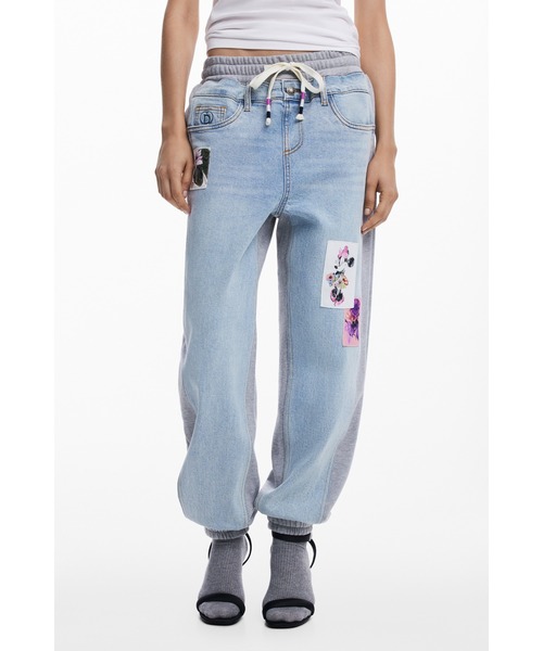 <デザイン>デニムとスウェット素材を組み合わせた、ユニークな切替デザインのジョガーパンツ。サイドのスウェット切替と裾のリブデザインで、快適な穿き心地を実現。フロントにはミニーマウスと花柄のワッペンをあしらい、遊び心のある表情を演出しています。 <スタイル>スウェット素材とデニムの異素材ミックスで、リラックス感のあるカジュアルスタイルに。 ウエストのドローコードでサイズ調整も可能。白スニーカーと合わせて、休日のお出かけスタイルが完成します。 <information> ・アイテムのお気に入り登録 お気に入りした商品の入荷状況や、残り1点となった際の通知、セール情報などをお届けいたします。 ・ショップのお気に入り登録 最新コレクションの入荷情報や品切れ商品の再販売、ショップニュースなど、さまざまな最新情報をご案内いたします。 <Pick up> 店舗取り置きサービスがスタートいたしました。ご注文の商品を最短即日、お近くの店舗でお受け取りいただけます。 【Desigualデシグアル】 バルセロナ発のファッションブランド「Desigual(デシグアル)」。スペイン語で“他とは違う”という意味が現すとおり、他のブランドにはない地中海をイメージさせるカラフルな色使いやエキゾチックなパターン、パッチワークやデニムなど着る人の個性を引き立てるアイテムを展開。デイリーにも、ドレスアップにも活躍する幅広いデザインが魅力。レディースだけではなく、メンズやシューズなど幅広いラインナップを展開。ブランド名にもなっているDesigual(他とは違う)は、自分自身が他の人と違うことがどれだけ大切で楽しいことなのかを改めて感じてもらいたいという私たちの願いが込められています。 自由で楽しく、カラフルで前向き。本当の自分を呼び覚ます鮮やかなカラーやプリント、他とは一味違うスタイルはファッションを楽しくするものばかりです。
