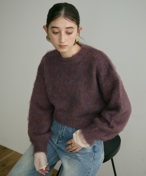 【ZOZO限定 ミックス糸を使用したニュアンスのあるカラーが魅力、女性らしい雰囲気のフラッフィーニット】▼Desigh■モヘアのようなふわっとした柔らかさとミックスした毛色が魅力■ワイドな幅と短めの丈感がスタイルアップ効果も◎■立体感のあるふんわりボリューム袖でメリハリのあるコーデに▼Stylingコンパクトな丈感でメリハリのある絶妙なシルエットに。ゆるっとしたサイズ感で、大人っぽいラフな着こなしが叶うお洒落見えアイテムです。-----------------------------------透け感:なし厚さ:普通光沢感:なし伸縮性:あり洗濯:ドライクリーニング推奨-----------------------------------※着用、お取り扱いの際は、商品についている品質表示とアテンションタグを必ずご確認下さい。※サンプル商品で撮影をしております。生産時の生地のロット違いによる色の差が生じる場合もございます。お使いのデバイスにより商品写真のお色が実物と異なって見える場合がございます。不良品ではございませんのでご了承くださいませ。クロップドニット/シャギー/ニュアンスカラー/秋服/冬服