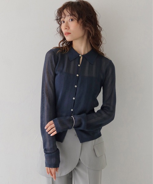 <<<シンプルだけど一枚で決まるシアーポロニット>>>大人気アイテムに新色が仲間入りし再登場!【POINT】・編地はランダムリブになっており、程よく体に沿うレディ感のあるシルエット。・透けすぎずのシアー感が肌が見えすぎないのでおすすめです。・コンパクトな衿や華奢な釦が大人っぽさを演出し、キレイめでもカジュアルでもコーデを組んでいただけます。【STYLING】・チューブトップや、短めのキャミワンピースと合わせていただくと流行りっぽい着こなしになります。・タイトスカートやワイドパンツ、ストレートパンツをボトムスに持ってきていただくとバランスよく着ていただけます。・衿付きできちんと感があるので、オフィスカジュアルにもおすすめです。・上下の釦を外して着崩したりと、雰囲気を変えたり、色によっても様々なコーデに合わせていただけます。【FABRIC】柔らかく、さっぱりとした質感◆透け感:あり◆厚み:薄め◆伸縮性:あり※素材の特性上、表面の粗いアイテム(スパンコールバッグやスタッズなど)と擦れてしまうと引っ掛かりの原因になりますのでご注意下さい。※撮影場所により、実際の色味と若干異なる場合がございます。 あらかじめご了承くださいませ。