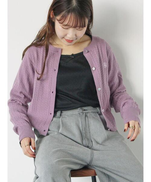 細ケーブル編みのデザインが上品な風合いを演出するカーディガン。 胸元には刺しゅうを施しており、スタイリングのさりげないアクセントになります。 丸みのあるクルーネックがあらゆる着こなしに馴染みやすいのもポイント◎ デイリーユースや休日のお出かけにも重宝したいアイテムです。 ※商品画像は、撮影環境やお客様のご利用のPC・スマートフォンのモニター環境などにより実物と色味に差異がある場合がございます。