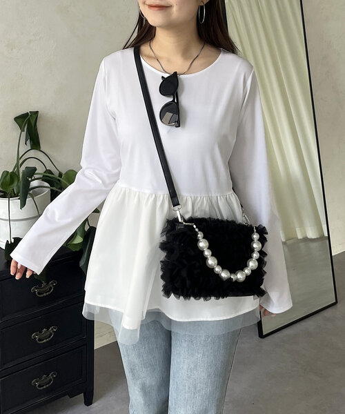 垢抜けコーデの手助けになるチュールペプラムロンT ●1枚で着てもニットやカーディガンを重ねても◎ ●バックメタルが高見えポイントです ●さらっとした生地感で真夏以外活躍します◎ ●合わせるアイテムによって雰囲気を変えて楽しめます ペプラム/ロンT/きれいめカジュアル/大人カジュアル -------------------------------------------------------------- 生地の厚さ:やや薄い 伸縮性:なし 透け感:ややあり 裏地:なし 洗濯方法:ご自宅で手洗い可 -------------------------------------------------------------- ※商品のお取り扱いに関しましては、商品に付属の アテンションカード、洗濯ネームをご覧ください。 ※撮影場所やお使いのモニター環境により若干お色味が 異なる場合がございます。 特にロケの撮影では明るく見える傾向にございます。 ※サイト上ではフリーサイズの表記ですが、商品タグには Mサイズと表記されている場合がございます。 その場合、ワンサイズでのご用意となりますのでサイズミス などではございません。詳しいサイズはサイズスペックを ご確認いただきますようお願い致します。 ※サイト上でのカラー名とお届けした商品に記載されている カラー名が異なる場合がございますので予めご了承ください。 <返品・キャンセルについて> ・着用・洗濯後の返品は致しかねます。 ・商品到着後、着用前に商品を確認して頂きますようお願い致します