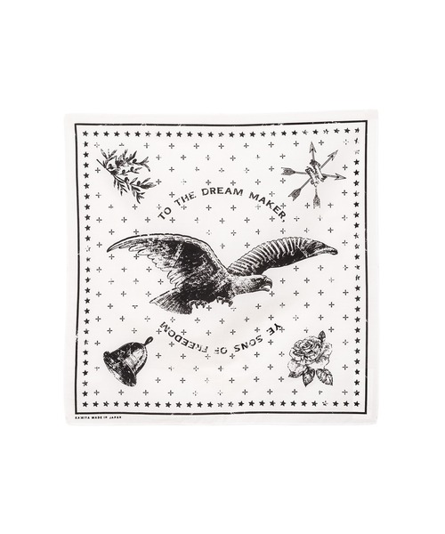 【KAMIYA 2025 Spring/Summer Collection】 “イーグル” バンダナ 53×53 オリジナルグラフィックのバンダナ。 コットン100%の国産生地を使用。 着用サイズ : FREE