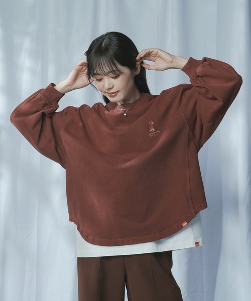 毎シーズン大人気のピグメント染めトップスが登場。USAコットン100%を使用した、しっかりとした生地感が特徴です。デザインは、裄丈が長めで、袖口にボリューム感を持たせたビッグシルエットが特徴です。ゆったりとしたオーバーサイズで、ボリュームのあるスリーブやラウンド裾が、カジュアルな中にも女性らしさを引き立てます。ピグメント染めならではの風合いで、生地だけでなく、刺繍やプリントにも独特の味わいが出ています。左胸にはブランドロゴのスカイラインからインスパイアされた新キャラクター「スカイヘッド」の刺繍がポイントに。バックには手書き風の可愛いロゴがプリントされ、シンプルながらも個性を感じさせます。カジュアルなデザインで、日常使いにもぴったりな一枚です。