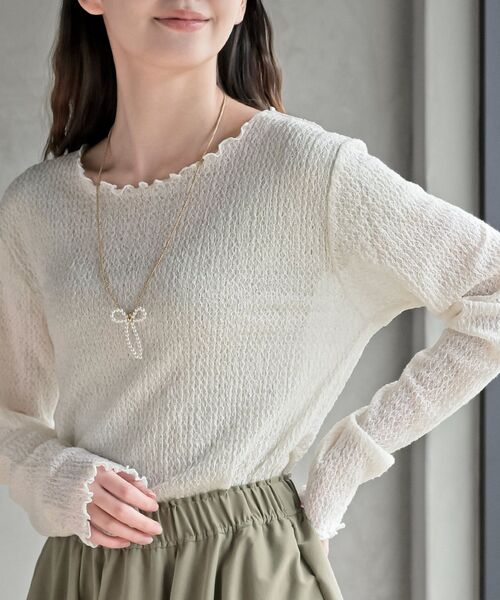 ☆2026/SS 再入荷☆ くしゅくしゅ可愛いニュアンスカットソー クシュっとした風合が可愛いカットソートップス。 ストレッチ性に優れているので着脱もしやすくリラックスしてご着用いただける1枚です。 シアー感もあるので女性らしい装いに◎。 襟と袖口のメロウがフェミニンに仕上げてくれる1枚です。 裏地なし 伸縮性あり 薄手 織キズやだま等みられる場合もございます 洗濯:洗濯機使用可(ネット使用) ※再入荷の場合、生産時期が異なるため色・素材・サイズ・デザイン等多少異なる場合がございますので予めご了承ください ▼お気に入り登録でお得がいっぱい▼ ~商品をお気に入り登録~ 再入荷・ラスト1点などの通知を受け取ることができます! ~ブランドをお気に入り登録~ 《rps》の新商品・再入荷情報をいち早くお届け!