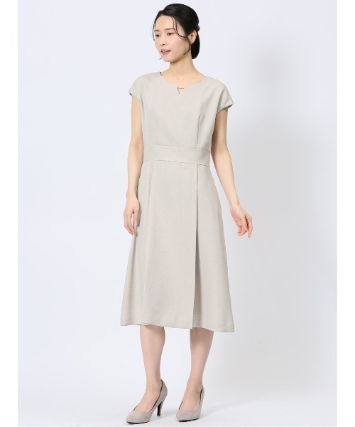 ■素材特徴 サラッとしたドライタッチなポリエステル生地を使用しています。ツイード調のウールのようなルックス、シャークスキンの織り柄、メランジ見えのニュアンスのある表情が特徴です。裏地はストレッチ性に優れたポリエステル生地です。 ■機能 【ストレッチ】表地・裏地共に伸縮して、ストレスフリーな着心地。 【マシンウォッシャブル】洗濯機で洗えます。(要ネット・弱水流) 【UVカット】紫外線を通しにくい生地を使用。UVカット効果でお肌を守ります。 【イージーケア】洗濯後もシワが入りにくく、アイロン掛けも簡単。 ■デザイン エレガントに着こなせる半袖のタック入りワンピースです。衿元のゴールドバーがお顔まわりを華やかに演出してくれます。ポケット付きなので利便性にも優れています。後ろファスナー付き。 ■シルエット ボディラインに自然に沿ったセミフレアーシルエットです。ロング丈なので、気になる部分を隠しつつお洒落に体型カバーが可能です。前後に入れたボックスプリーツとウエストの切り替え位置を高めに設定したことで、スタイルアップ効果もあります。 ■コーディネート 同素材のノーカラージャケットと合わせて、お宮参り・卒入園・卒入業等のセレモニーやオケージョンに。ハレの日から毎日の通勤まで、幅広いシーンにオンオフ兼用で活躍してくれます。 ■セットアップアイテムは下記品番をご参照ください。 ・ノーカラージャケット :120104393110533 ・シャーク ワイドパンツ:120114393110533 フィット感:標準 シーズン:春夏 展開カラー:ベージュ 裏地:有り *こちらの商品はセット販売ではなく、単品のみの販売となります。 *アテンションタグ・洗濯ネームを御確認の上、着用又は取り扱い下さい。 *光の当たる場所や高温多湿になる場所での保管は避けて下さい。 *使用の有無に関わらず、経年劣化は進行いたしますのでご了承下さい。 *生地の裁断・縫製方法により、写真と同様の柄が出ない場合がございます。 *閲覧デバイス・環境により質感・色味に誤差が生じる場合がございます。 * ZOZOTOWN お買い物ガイド 商品のお気に入り登録 ♡をクリックしましょう!完売カラーの再入荷通知や、ラスト1点の通知、セールの通知をお知らせします。 ブランドのお気に入り登録 新商品や再入荷など、いち早くお得な情報を受け取ることができます。 最短で翌日お届け 商品をカートに入れた後、注文内容の確認ページで「即日配送」を選択していただければ、最短でご注文した翌日にお届け致します。 (ZOZOTOWNお買いものガイドをご参照ください) *裾上げ等のお直しが必要な場合は、ZOZOTOWN納品書をご持参していただき最寄のタカキューグループ店舗までお持ちください。 お直し代金 お直しにかかる期間は店舗によって異なる場合がございますので、詳しくは店舗スタッフまでお問い合わせください。 ビジネス 通勤 面接 就活 リクルート フォーマル 新生活 婚活 記念日 授業参観 参観日 敬老の日 卒入 ハレの日 入学式 入園式 卒業式 卒園式 セレモニー オケージョン ブライダル 結婚式 ウェディング パーティー プレゼント・ギフト ベーシック 定番 20代 30代 40代 アダルト シニア 等幅広いシーンやスタイルに活躍してくれます。