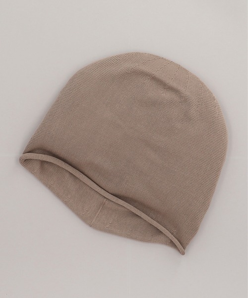 シルク100%のシングルニット。 ■デザイン 装飾を省いたシンプルなデザインに、クルンとロールアップされた裾がポイント。薄手で軽く、持ち運びにも最適です。 ■シルエット ゆったりと倒れるリラックスシルエットに製作。締め付けのないストレスフリーなかぶり心地も◎。 ■素材 なめらかなシルク素材を贅沢に使用。ほのかな光沢が高級感を演出します。 ■お手入れ方法 洗濯不可。汚れにつきましては、帽子が汚れてしまう前の対策として、消臭・抗菌用のスプレーをお勧めしております。