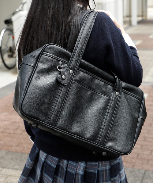 【デザイン】ハートチャーム付きスクバ スクールバッグ 通学 中学生 高校生 カバンメーカーが使いやすさとかわいさにこだわって企画、 デザインしたオリジナルスクールバッグ! バッグの裏地は開ける度気分が上がるように清楚系チェック柄をセレクト。 制服との相性もぴったり。 イヤホンホルダーにもなるハートのチャームがアクセントになってオシャレです。 汚れにくく傷の付きにくい合成皮革生地と 丈夫で軽量なナイロン素材の2種類を用意。 ノートPCなどの電子機器類、教科書などの重い荷物を 入れても形が崩れないよう設計されており、 毎日の通学にも安心してお使いいただけます。 ■DETAIL ・前面のハートのチャームは、イヤホンホルダーになります。 ・チャームは着脱可能。Dカン付きで好きなマスコットを付けても〇 ・大きく開いて、中身が見やすい。 ・メイン開閉口はファスナーです。 ・内側にペットボトルが入るドリンクホルダー付き。 ・荷物を入れても肩が痛くなりにくいように幅広めのハンドル。 ・底部には丈夫な大きめの底鋲付き。 【サイズ等】 ●SIZE:高さ:約26cm / 幅:約40cm / マチ:約14cm ●ハンドル長さ(PU):約62cm×幅:約3.7cm、持ち手高さ:約20cm ●ハンドル長さ(ナイロン):約60cm×幅:約2cm、持ち手高さ:約19cm ●外ポケット:前面オープンポケット1、前面ファスナー付きポケット1(内にオープンポケット2) ●内ポケット:マグネット付きポケット1、ギャザーポケット1 ●バッグのみ重量:約720g(PU)、約562g(ナイロン) ●素材:PU・ナイロン ●バッグのメイン開閉口はファスナーになっております。 ●金具色:シルバー ※前面にイヤホンホルダー付き ※底板付き(取り外し不可能) [カラー] ブラック・ブラウン・ナイロンブラック・ナイロンネイビー 【注意事項】 合成皮革特有のにおいがする場合がござます。 においが気になる場合は一度陰干しされてからご使用ください。 ◆商品のお気に入り登録◆ 完売カラーの再入荷通知や、ラスト1点の通知、 セールの通知も受け取ることができますので、是非ご登録ください。 ◆ブランドのお気に入り登録◆ 新商品や再入荷などの情報を受け取ることができますので、是非ご登録ください。