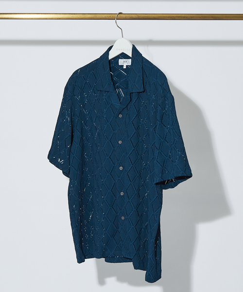 【素材】ポリウレタン混のシアー素材は通気性が良くストレッチ性に優れ快適な着心地の一枚です。 【デザイン】 細かい凹凸とダイヤ柄シアー生地はトレンド感溢れる今期一押しのシャツ。衿型はオープンカラーにし、リラックスシルエットに仕上げラフでありながら清潔感がある印象に仕上がります。 【コーディネート】 ショーツやデニム・チノなどのカジュアル合わせはもちろんスラックス等のキレイなモード合わせのスタイリングもおすすめです。 【AH ABAHOUSE】 手ごろな価格でトレンドアイテムを発信するABAHOUSE GRAYのインライン。 モードスタイルをベースに遊び心と自由な発想を取り入れ、”今”の気分を味わいながら日々のファッションを楽しみ、日常に溶け込むスタイルを提案いたします。 ブラック モデル:H181 W74 H87 着用サイズ:48