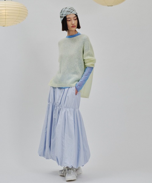 ■マシンウォッシャブル■撥水加工■リサイクルポリエステル使用透け感:なし裏地:有り伸縮性:やや有り光沢感:やや有り生地の厚さ:やや薄手ポケット:有り■Designトレンドのパルーンを取り入れた、大人が着やすいボリュームスカート。切替部分はウエストからではなく、下部分をボリュームを出す事で女性らしい印象に。ウエストゴムで楽に着れる嬉しいポイント。ルーズなニットと合わせてレディに着こなすのがおススメです。■Fabric/Function微起毛感のある上品なタフタ生地を使用しており、冬から春先までロングシーズンで着用して頂ける素材感です。弱撥水も施しているので雨の日も安心して着用出来ます。■Coordinate※照明の関係により、実際よりも色味が違って見える場合があります。またパソコン・スマートフォンなどの環境により、若干製品と画像のカラーが異なる場合もございます。予めご了承ください。商品の色味は、商品単品画像をご参照下さい。 ※商品画像はサンプルのため、色味やサイズ等の仕様に変更がある場合がございますので、予めご了承ください。