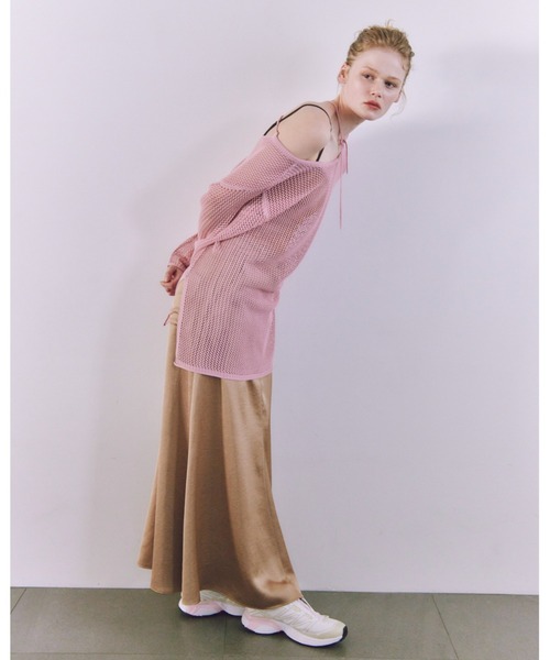 ■マシンウォッシャブル ■防シワ加工 透け感:なし 裏地:なし 伸縮性:有り 光沢感:有り 生地の厚さ:やや薄手 ウエスト:後ろゴム ポケット:有り ■Design 揺らいだような表面感のあるサテン生地をしようしたナロースカート。 ジップアップの前開きにしたことで、フェミニンになりすぎず、カジュアルにもなりすぎない、ベーシックなコーディネートも綺麗に見せてくれるナローシルエットの1枚です。 ■Fabric/Function 防シワ加工の施してある素材なので、座りシワも気にせず着用頂けます。 ※照明の関係により、実際よりも色味が違って見える場合があります。 またパソコン・スマートフォンなどの環境により、若干製品と画像のカラーが異なる場合もございます。予めご了承ください。 商品の色味は、商品単品画像をご参照下さい。 ※商品画像はサンプルのため、色味やサイズ等の仕様に変更がある場合がございますので、予めご了承ください。